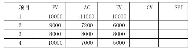 下表为同时开展的4 个项目在某个时刻的计划值PV、实际成本AC和挣值EV,该时刻成本超出最多的项目和进度最为落后的项目分别是( )A. 项目1,项目1 B. 项目3,项目2 C. 项目4,项目4 D. 项目2,项目4