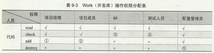 同时,对项目相关人员在该Work(开发库)中代码的操作权限进行了如表9-3所示的分配。
