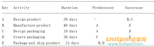 A company wants to start a new product line. The following activities were identified by the project.