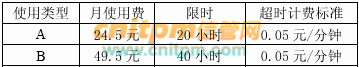 某通信公司公布了速率为512K的两种ADSL使用类型的资费标准如下:根据该资费标准可以算出,月上网时间在T以下者,选择类型A 比较合适;月上网时间在T 以上者,应选择类型B。T 的值应是() 。A.15小时30分B.28小时20分C.30小时D.40小时