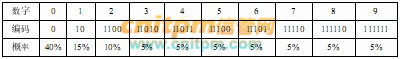 下表列出了数字0~9的某种二进制编码值及其在某类应用中出现的概率,这种编码的平均位数大约为( )。