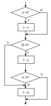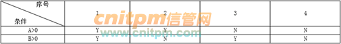 下面的流程图中有两个判断条件A>0和B>0。这些判断条件的各种组合情况如下表所示。表中Y表示相应的条件成立,N表示相应的条件不成立。每一列表示一种条件组合,并在列首用相应的序号来表示。