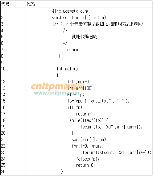 下面代码的设计意图是:将保存在文本文件data.txt中的一系列整数(不超过100个)读取出来存入数组arr[],然后调用函数sort()对数组arr的元素进行排序,最后在显示屏输出数组arr的内容。