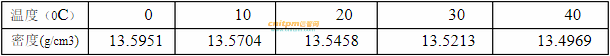 实验测得水银密度随温度变化的若干数据见下表。通过线性插值,可以推算,在22度温度是水银的密度为( )。