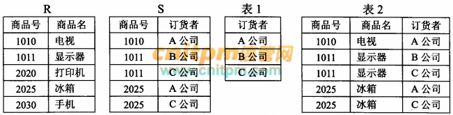 对关系S进行(1)运算,可以得到表1;对关系R和S进行(2)运算,可以得到表2。
