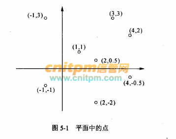 下面的程序用来计算并寻找平面坐标系中给定点中最近的点对(若存在多对,则输出其中的一对即可)。程序运行时,先输入点的个数和一组互异的点的坐标,通过计算每对点之间的距离,从而确定出距离最近的点对。例如,在图 5-1 所示的8个点中,点(1,1) 与(2,0.5)是间距最近的点对。