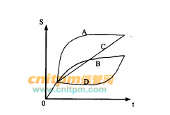某汽车在匀速行驶一段时间后,司机踩刹车逐渐减速直到停车。为描述其行驶过程, 以时间 t 为 X 轴,行驶距离 S 为 Y 轴,建立坐标系。下图中,曲线( )大致反映了其刹车过程。