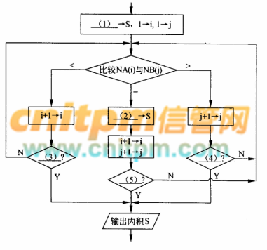设两个新闻网页的特征向量分别为:甲(a1,a2,…,ak)、乙(b1,b2,…,bk),则计算这两个网页的相似度时需要先计算它们的内积S=a1b1+a2b2+…+akbk。一般情况下,新闻网页特征向量的维数是巨大的,但每个特征向量中非零元素却并不多。为了节省存储空间和计算时间,我们依次用特征向量中非零元素的序号及相应的词频值来简化特征向量。为此,我们用(NA(i),A(i)|i=1,2,…,m)和(NB(j),B(j)|j=1,2,…,n)来简化两个网页的特征向量。其中:NA(i)从前到后描述了特征向量甲中非零元素A(i)的序号(NB(1)