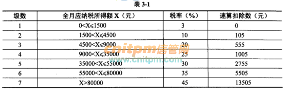 税率和速算扣除数分别与不同的应纳税所得额对应,如表 3-1 所示。
