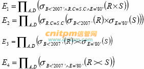 若有关系模式 R(A,B,C)和 S(C,D,E),关系代数表达式E1、E2、E3和E4,且 如果严格按照表达式运算顺序,查询效率最高的是()。