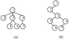 若将某有序树 T 转换为二叉树 T1,则 T 中结点的后(根)序序列就是 T1 中结点的 () 遍历序列。例如下图(a)所示的有序树转化为二叉树后如图(b)所示。