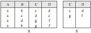 若关系R、S如下图所示,则RS后的属性列数和元组个数分别为(1);π1,4(σ3=6(R×S))=(2);R÷S=(3)。