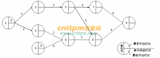 进度安排的常用图形描述方法有 Gantt 图和 PERT 图。Gantt 图不能清晰地描述(1);PERT图可以给出哪些任务完成后才能开始另一些任务。下图所示的PERT图中,事件6的最晚开始时刻是(2)。