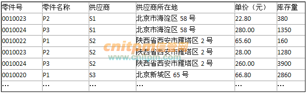 A.P1(零件号,零件名称,单价) 、P2(供应商,供应商所在地,库存量)