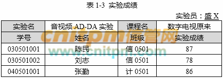 (3)由实验员给出每个学生每次实验的成绩,包括:实验名、学号、姓名、班级、实验成绩等信息,实验成绩如表1-3所示。