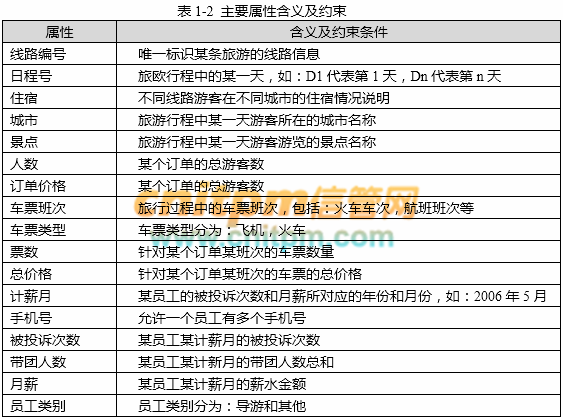 1.旅行社可发布旅游线路的信息,包含:线路的价格、天数、住宿情况,以及具体的行程安排等。不同的线路参观的景点及住宿情况不相同,如表1-1所示。