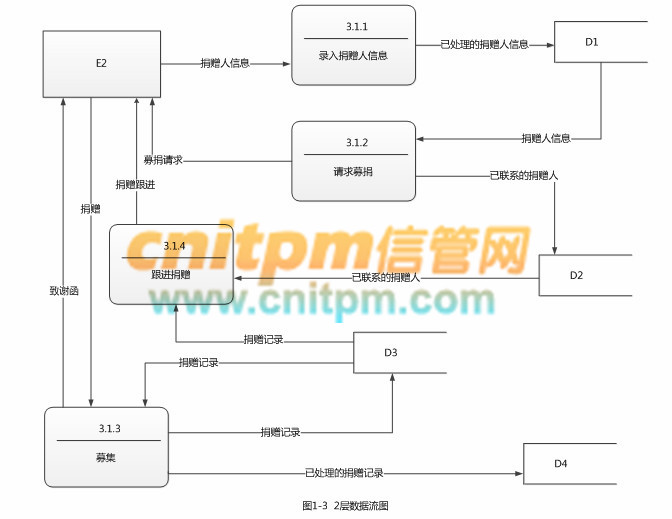 现采用结构化方法对募捐系统进行分析与设计,获得如图1-1、1-2和1-3所示分层数据流图。
