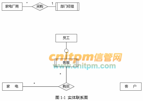 (2)电子商务公司根据销售情况,由部门经理向家电厂商订购各类家电。每个家电厂商只能由一名部门经理负责。