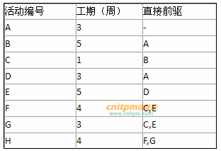某项目包含的活动如下表所示,完成整个项目的最短时间为(1)周。不能通过缩短活动(2)的工期,来缩短整个项目的完成时间。