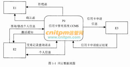 1.信用卡申请。非信用卡客户填写信用卡申请表,说明所要申请的信用卡类型及申请者的基本信息,提交CCMS。如果信用卡申请被银行接受,CCMS将记录该客户的基本信息,并发送确认函给该客户,告知客户信用卡的有效期及信贷限额;否则该客户将会收到一封拒绝函。非信用卡客户收到确认函后成为信用卡客户。