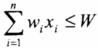 ,其中,xi∈{0,1},xi=0表示第i个物品不放入背包,xi=1表示第i个物品 放入背包。