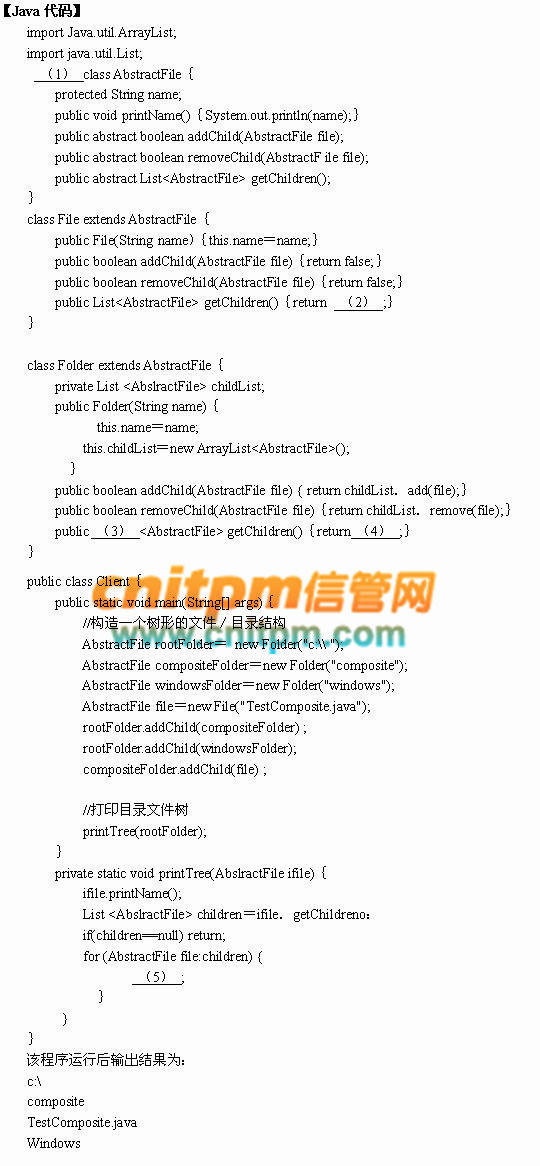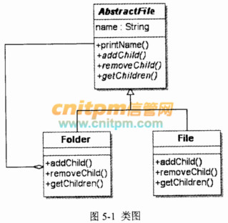 现欲构造一文件/目录树,采用组合(Composite)设计模式来设计,得到的类图如5-1所示: