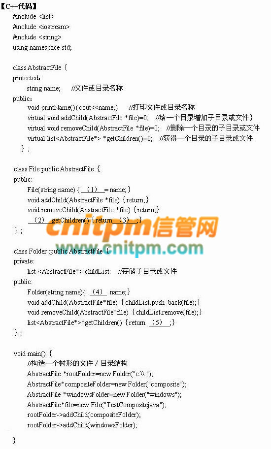 5题: 阅读下列说明和C++代码,将应填入 (n) 处的字句写在答题纸的对应栏内。