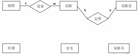 一个实验室可进行多种类型不同的实验。由于实验室和实验员资源有限,需根据学生人数分批次安排实验室和实验员。一门课程可以为多个班级开设,每个班级每学期可以开设多门课程。一门课程的一种实验可以根据人数、实验室的可容纳人数和实验类型,分批次开设在多个实验室的不同时间段。一个实验室的一次实验可以分配多个实验员负责辅导实验,实验员给出学生的每次实验成绩。