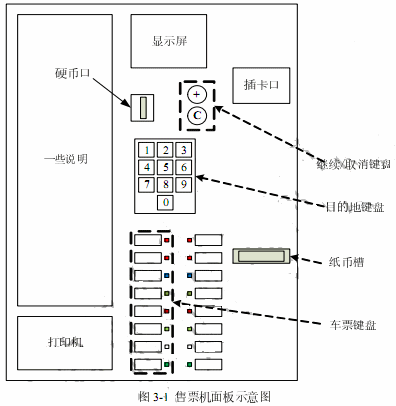 某运输公司决定为新的售票机开发车票销售的控制软件。图3-1给出了售票机的面板示意图以及相关的控制部件。