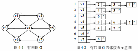 例如,某有向图G如图4-1所示,其邻接表如图4-2所示。