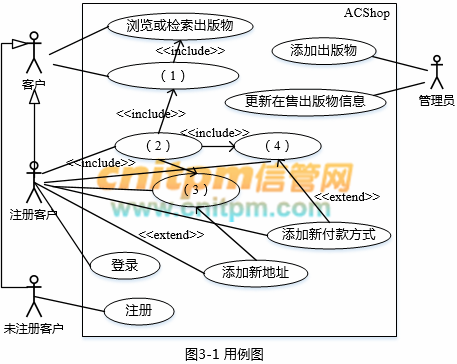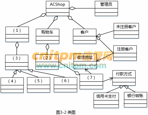现采用面向对象方法分析并设计该网上商店ACShop,得到如图3-1所示的用例图和图3-2所示的类图。