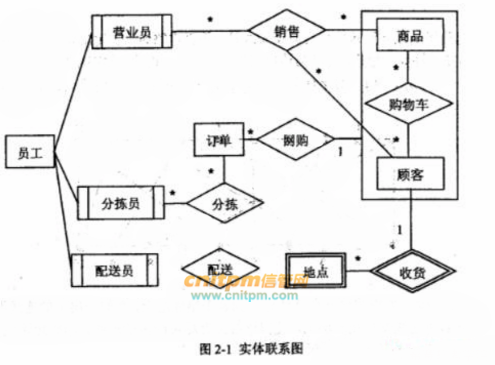 对于实体店销售,若要增加送货上门服务,由营业员在系统中下订单,与网购的订单进行后续的统一管理。请根据该需求,对图2-1进行补充,并修改订单关系模式。