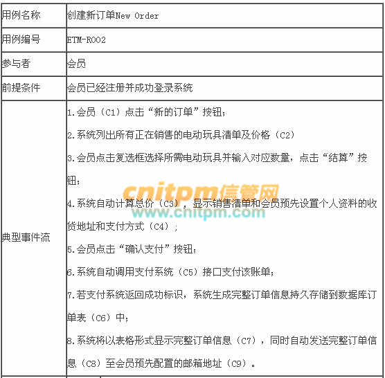 表 3-1 创建新订单 (NewOrder) 设计用例