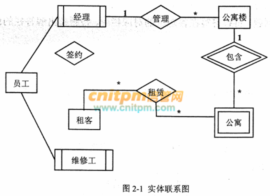 4.系统需记录每个员工的姓名、一个联系电话和月工资。员工类别可以是经理或维修工,也可兼任。每个经理可以管理多幢公寓楼。每幢公寓楼必须由一个经理管理。系统需记录每个维修工的业务技能,如:水暖维修、电工、木工等。