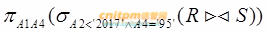 SELECT A1,A4 FROM R, S WHERE R.A2<‘2017’(2)