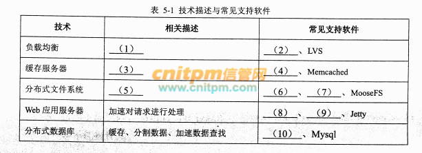 针对李工提出的改进方案,从 a ~j 中分别选出各技术的相关描述和对应常见支持软件填入表 5-1 中的(1) ~(10) 处。