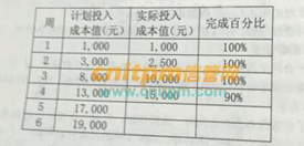 某信息系统集成项目计划6周完成,项目经理就前4周的项目进展情况进行分析情况如下,项目的成本执行指数CPI为()。A、0.83B、0.87C、0.88D、0.95