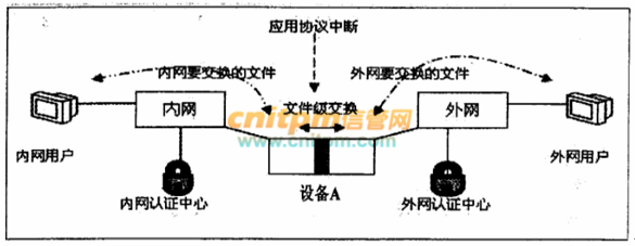 在网络规划中,政府内外网之间应该部署网络安全防护设备。在下图中部署的设备A是(55),对设备A的作用描述错误的是(56)。