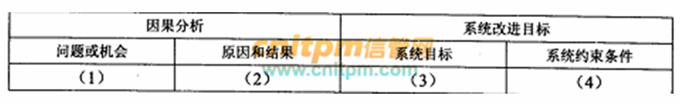 因果分析是问题分析阶段一项重要技术,可以得出对系统问题的真正理解,并且有助于得到更具有创造性和价值的方案。请将题目中所列(a)~(i)各项内容填入表中(1)~(4)对应位置。