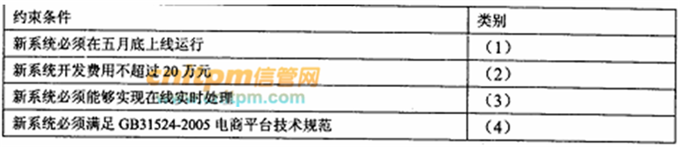 系统约束条件可以分为四类,请将类别名称填入表中(1)~(4)对应的位置。