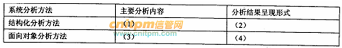 在系统分析阶段,结构化分析和面向对象分析方法主要分析过程和分析模型均有所区别,请将(a)~(g)各项内容填入表2-1(1)~(4)处对应位置。