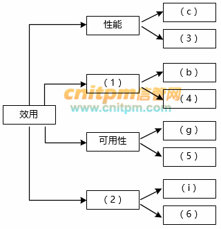 在架构评估过程中,质量属性效用树 (utility tree) 是对系统质量属性进行识别和优先级排序的重要工具。请给出合适的质量属性,填入图 1-1 中 (1)、(2) 空白处;并选择题干描述的 (a)~(o) ,填入(3) ~(6) 空白处,完成该系统的效用树。