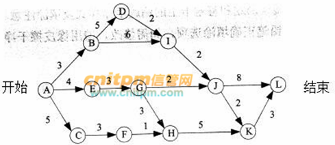 4-5.某软件项目的活动图如下图所示,其中顶点表示项目里程碑,连接顶点的边表示包含的活动,边上的数字表示活动的持续时间(天),则完成该项目的最少时间为(4)天。活动 BD和 HK最早可以从第(5)天开始。(活动AB.AE和 AC最早从第 1 天开始)