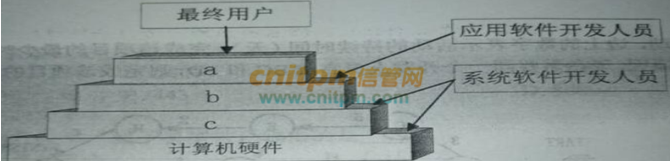计算机系统的层次结构如下圈所示,基于硬件之上的软件可分为a、b和c三个层次。图中a、b和c分别表示()