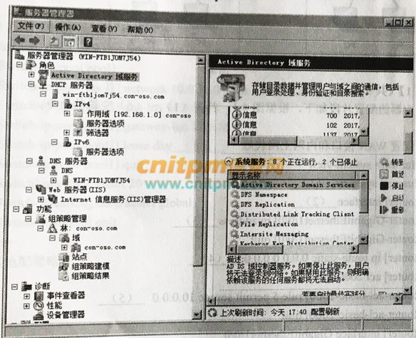 图3-1是安装好的服务器管理器界面,在当前配置下,根域的名称是(1)。