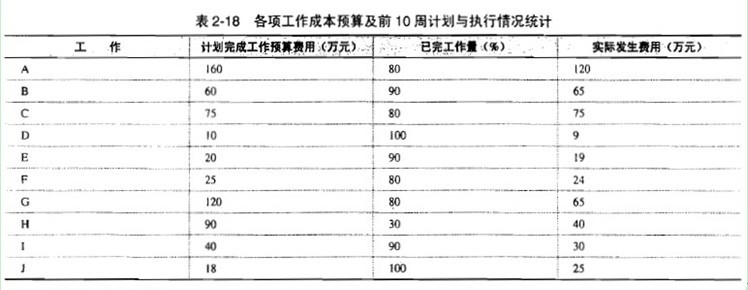2007年9月,系统集成商PH公司承担了某地市电子政务网络工程建设,合同额为820万元,全部工期预计16周。目前,该项目已进展到第11周,对项目前10周的实施情况进行了总结,有关执行情况汇总如表2-18所示。