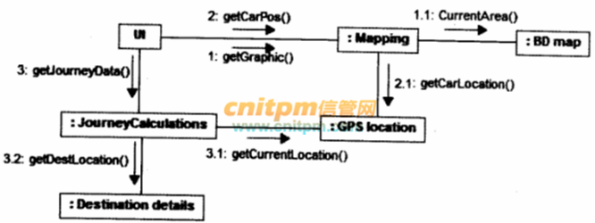 如下所示的图为UML的(42),用于展示某汽车导航系统中(43)。Mapping对象获取骑车当前位置(GPA Location)的消息为(44)