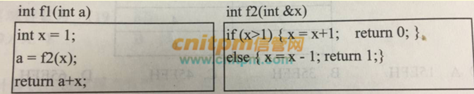 已知函数f1()、f2()的定义如下,调用f1时为传值调用,调用f2时为引用调用。设有函数调用t=f1(5),那么调用执行后t的值为( )。