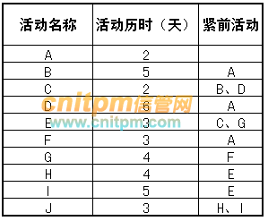 某信息系统项目包含如下十个活动。各活动的历时、活动逻辑关系如下表所示: