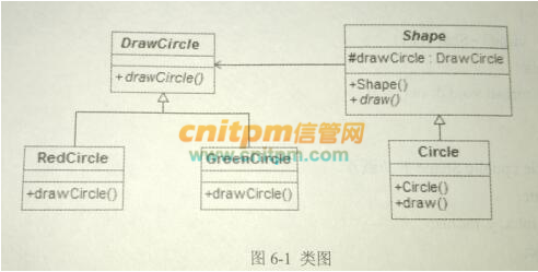 以下C++代码实现一个简单绘图工具,绘制不同形状以及不同颜色的图形。部分类及其关系如图6-1所示。